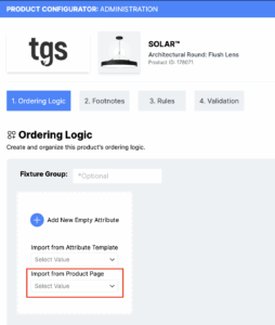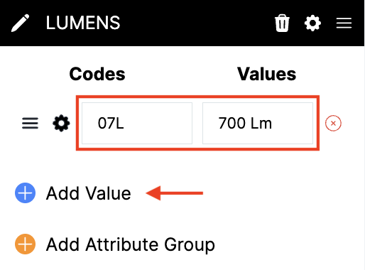 This guide will walk you through the process of creating and managing product ordering logic using attributes in The Lighting Exchange product configurator. Attributes define how codes and values are structured and displayed when configuring a product. You can populate attribute data in three ways: