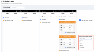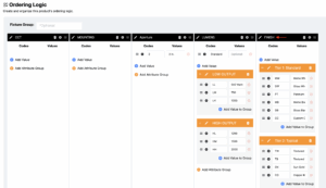 Attributes can be reorganized within the product ordering logic using the drag-and-drop feature. This allows you to quickly adapt and refine the product configuration for a seamless user experience.