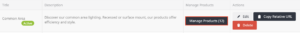 To add, remove, or reorder the products of an existing collection, click on ‘Manage Products’. Click on the arrows to move the products up, down, or all the way to the top. Clicking the ‘Edit’ button next to a particular product will take you directly to the editing page of the product.