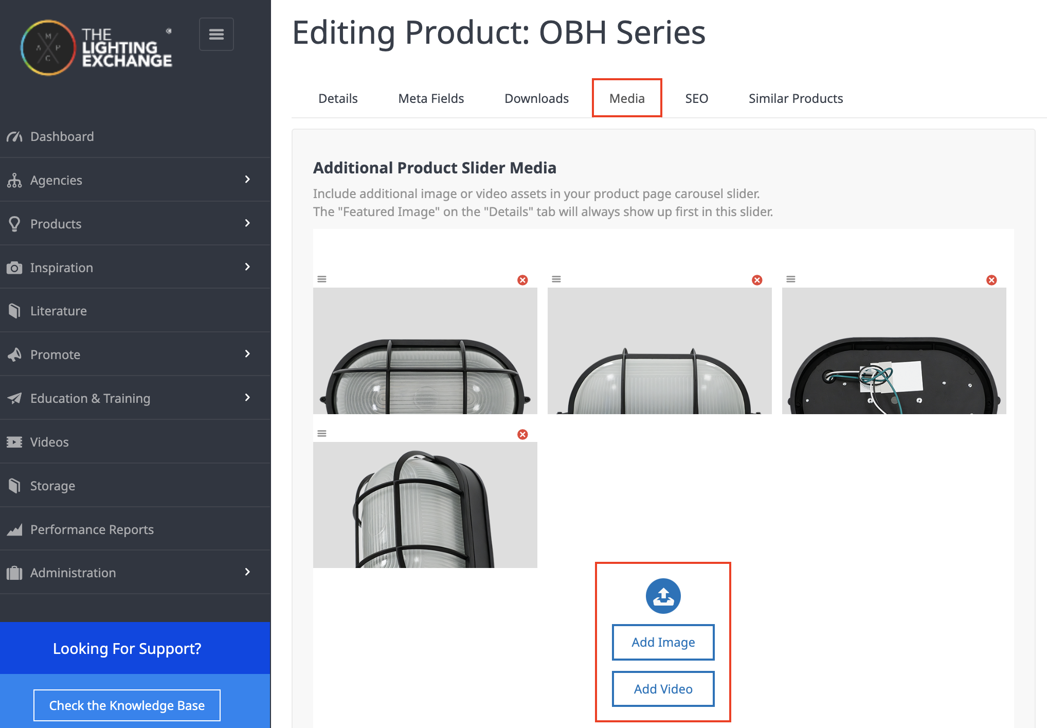 You’ll also have the ability to select already uploaded Application Images that include the product that you’re editing into the rotation of media. If you’d like to upload new photos, head over to the “Application Photo” section of The Lighting Exchange®. Once they have been uploaded you can then include them by selecting images on this page. Don’t forget to click ‘Save’!