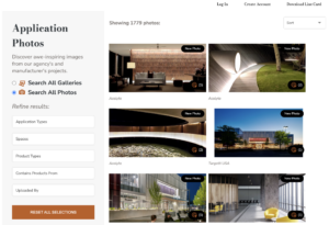 Within the portal, application images can be favorited, and saved to project’s design boards for inspiration and reference. Agencies on our PRO level subscription can use your manufacturer’s application images to build galleries that can be viewed by their customers, showcasing their work using your products!