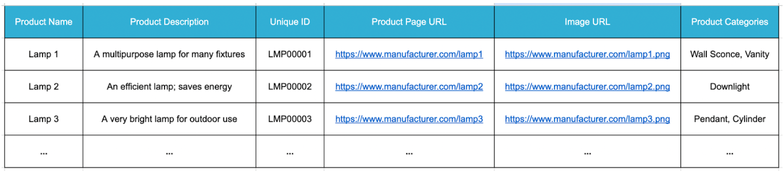 The six fields of information you need in order to properly sync your products with The Lighting Exchange® are as follows: