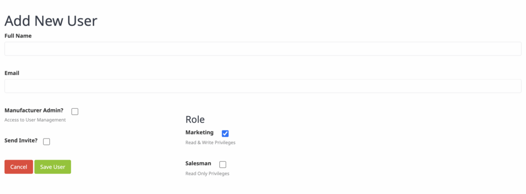 Enter the required information, then select if you’d like to grant them admin permissions, a specific role, and if you’d like to send them an invite. Lastly, hit save user and they will be added to your users and an invitation will be sent to their email to allow them to create their password. For any brand new user you will want to send them an invitation.