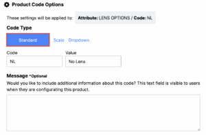 The Lighting Exchange Product Configurator provides three distinct code type options to help manufacturers efficiently organize their product attributes: Standard, Scale, and Dropdown. Choosing the right code type ensures seamless product configuration and enhances the user experience. Below is a breakdown of each code type to help you determine which one best fits your needs.