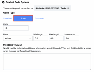 The Scale code type is designed for products that are specified in ranges or involve variables that require specific numerical increments.