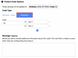 The Dropdown code type provides an easy-to-use selection method where administrators can create a list of predefined options for configurator users to choose from.